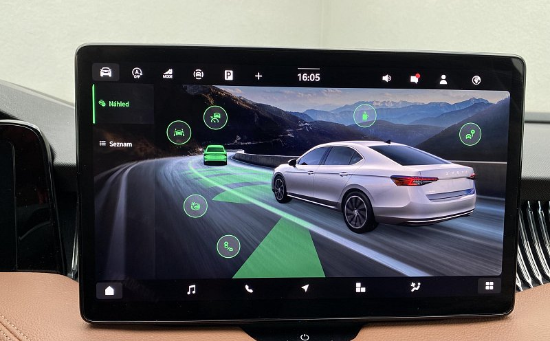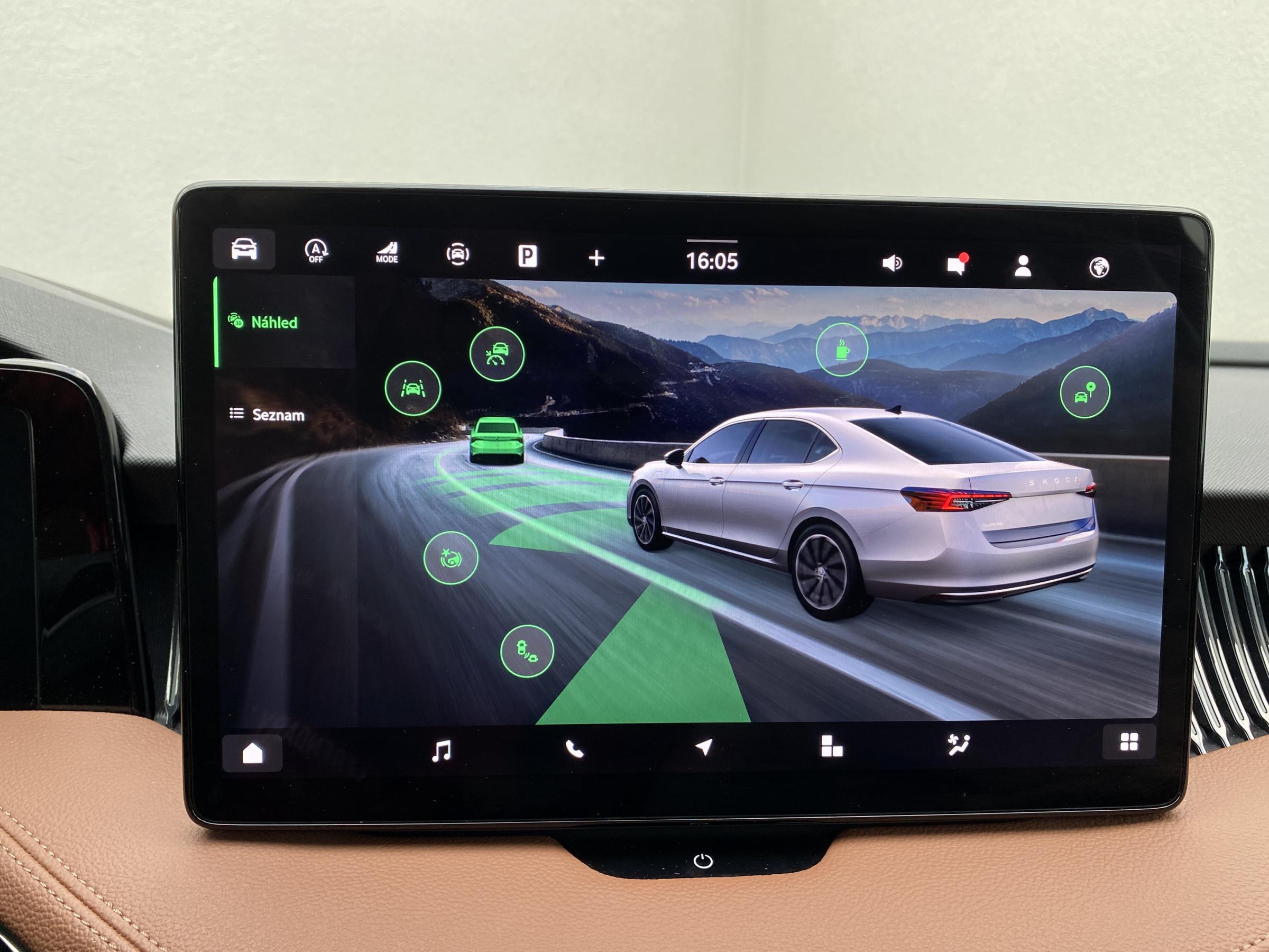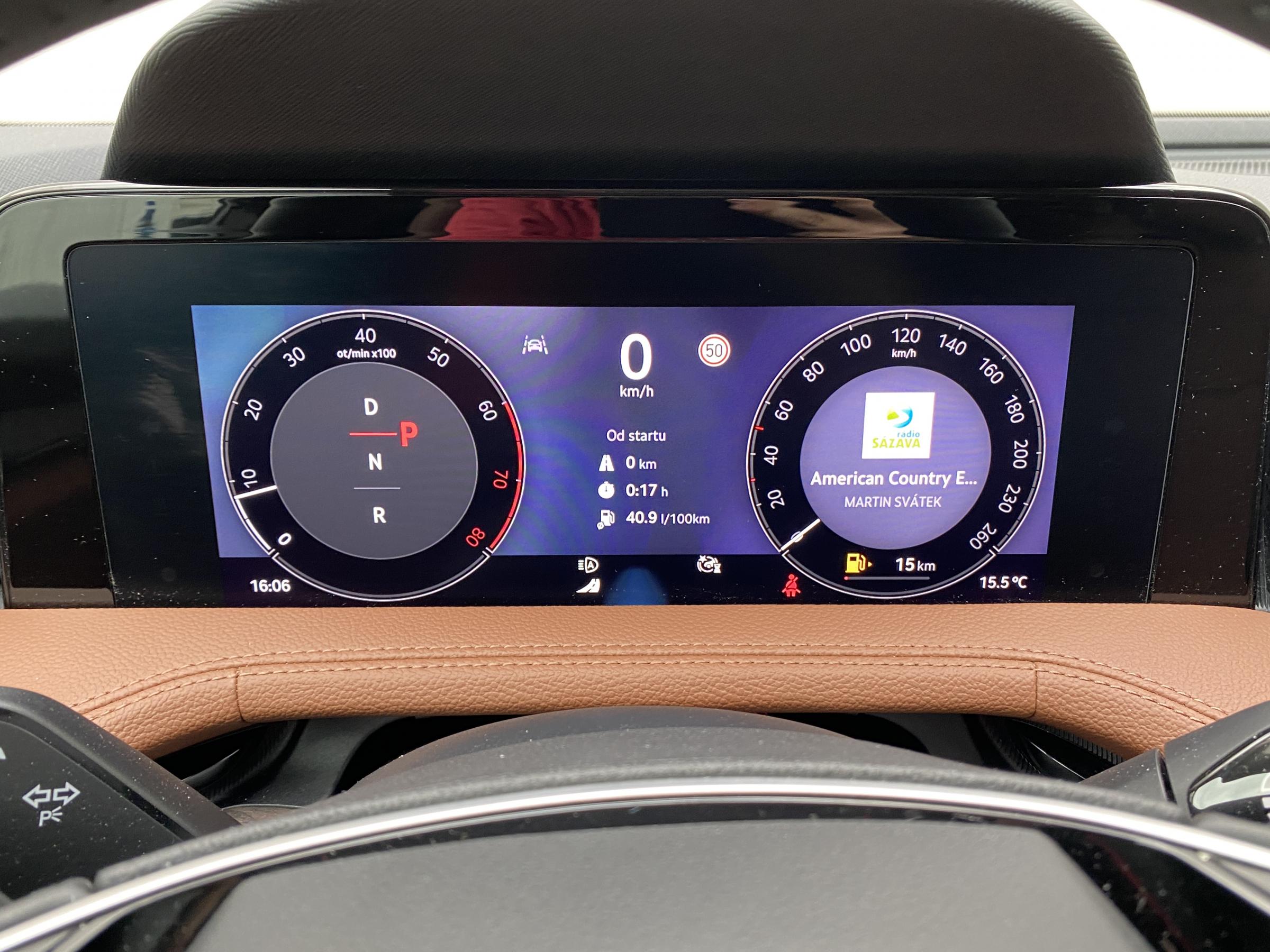 electrically adjustable memory seats / multifunction steering wheel / onboard computer / adjustable steering wheel / automatic air conditioning / armrest / electric windows / radio / voice-controlled onboard system / leather seats / premium sound system / Stop-start system / gear stick under steering wheel / rear window roller blinds / ventilated seats / 4 heated seats / head-up display / adaptive cruise control / satellite navigation / Android Auto / Apple Car Play / bluetooth / digital DAB radio reception / mobile connection / wireless phone charger / three-zone air conditioning / ambient LED interior lighting / digitální přístrojový štít